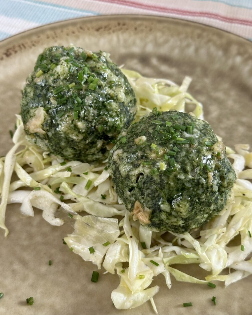 4. Spinach Bread Dumplings with Creamy Coleslaw