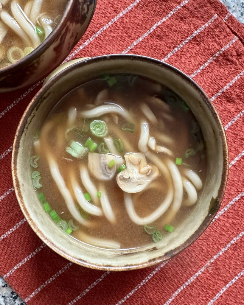 6. Udon Miso Soup with Mushrooms and Spring Onions